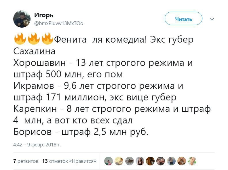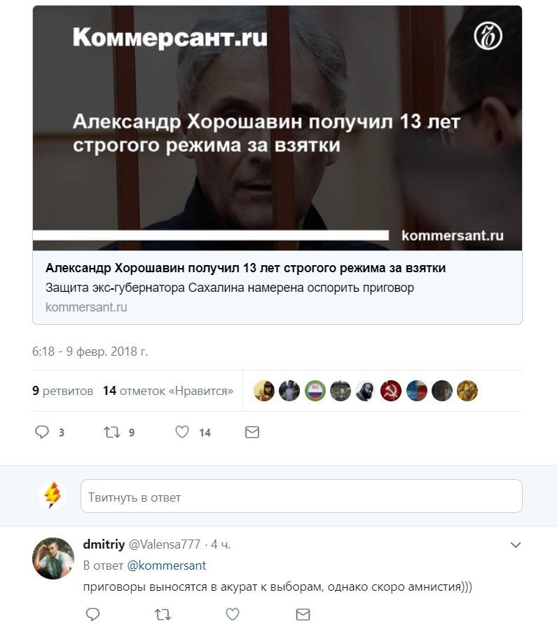 Тем не менее новость о каре для Хорошавина вместо одобрения вызвала скорее сомнения и подозрения в том, что он не «высидит» положенный судом срок. «После выборов будет амнистия», — убежденно пишут и в социальных сетях, и в комментариях к публикациям на сайтах СМИ.