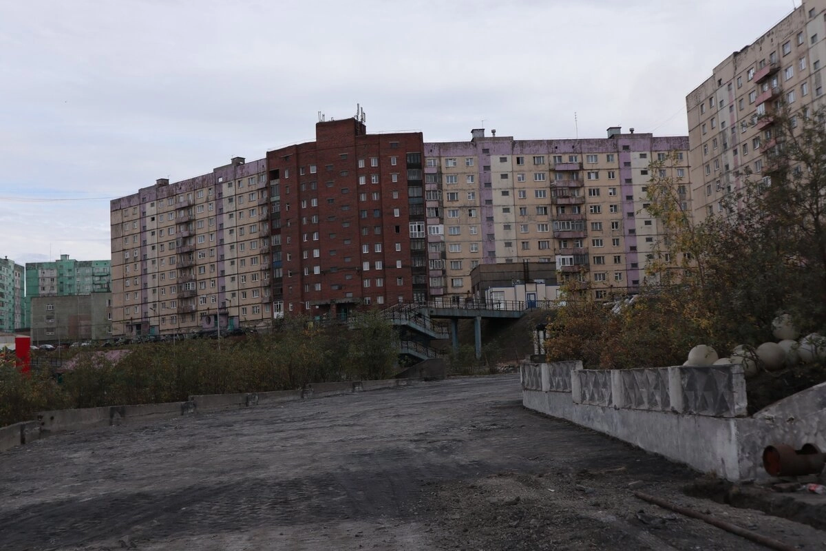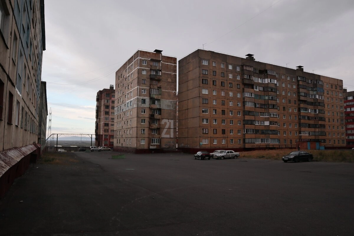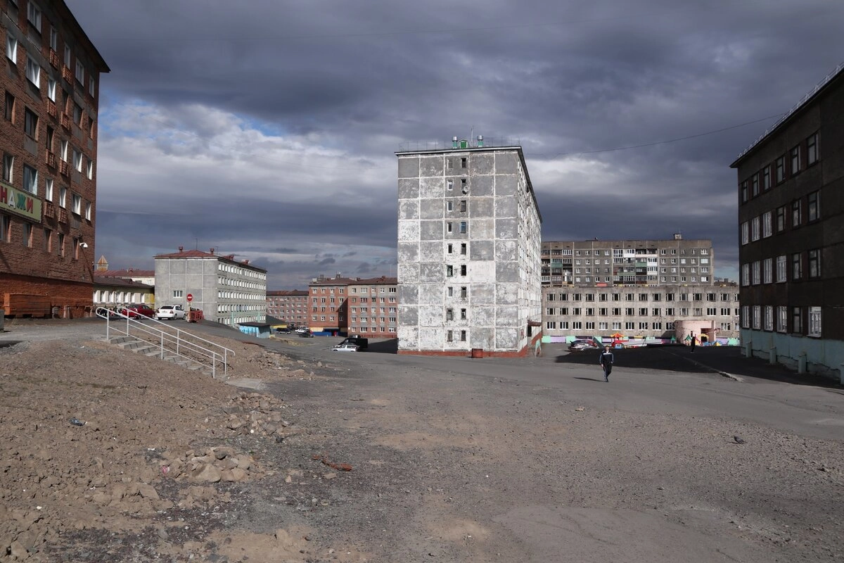 Норильск отличает от других городов то, что дворы тут — абсолютно голые. Вот просто натыканы пятиэтажки и девятиэтажки на пустой земле, а между ними нет вообще ничего!