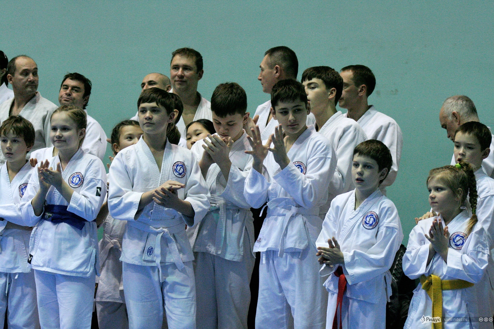 Как всегда, самый большой энтузиазм и желание проявляли совсем юные спортсмены. Так, на разминке пареньку лет семи папа – явно опытный спортсмен – пару минут старательно завязывал пояс «как надо», за что впоследствии и получил от благодарного сынули «по первое число».