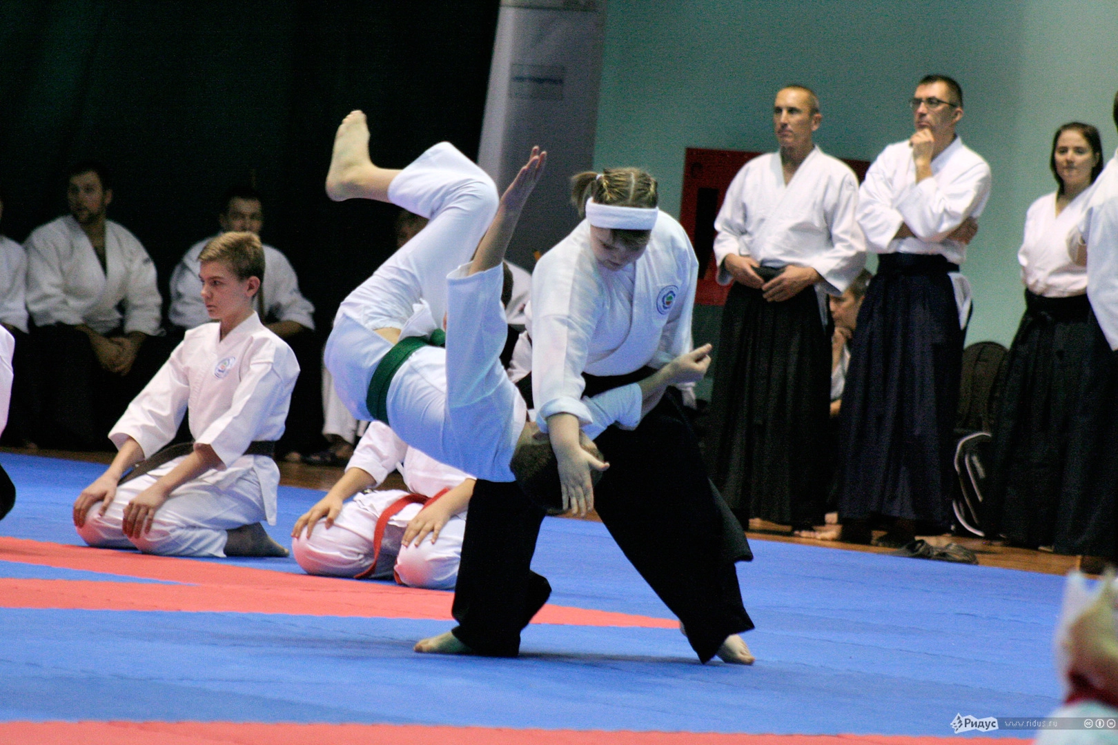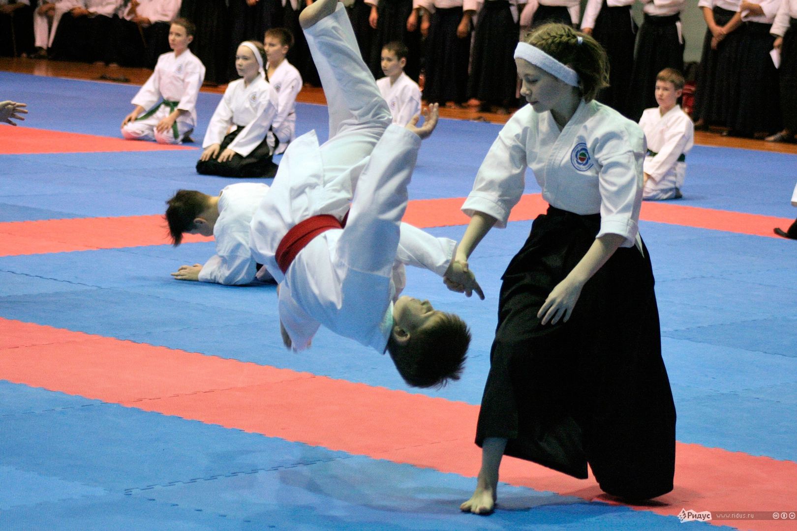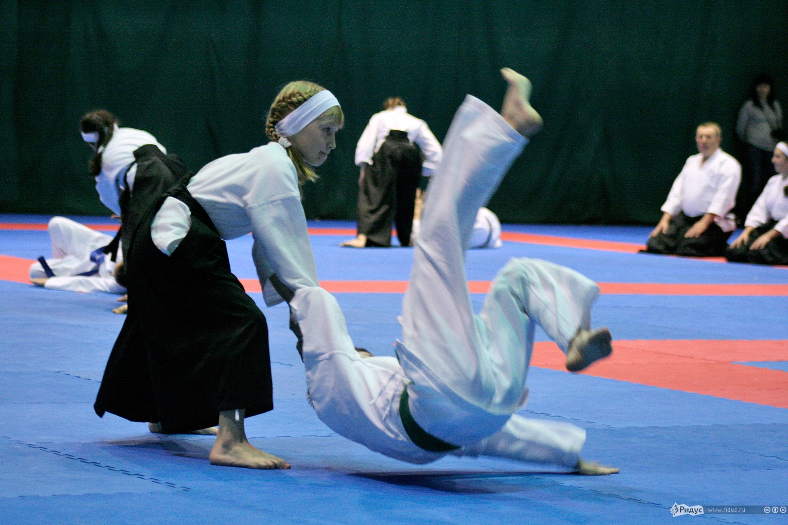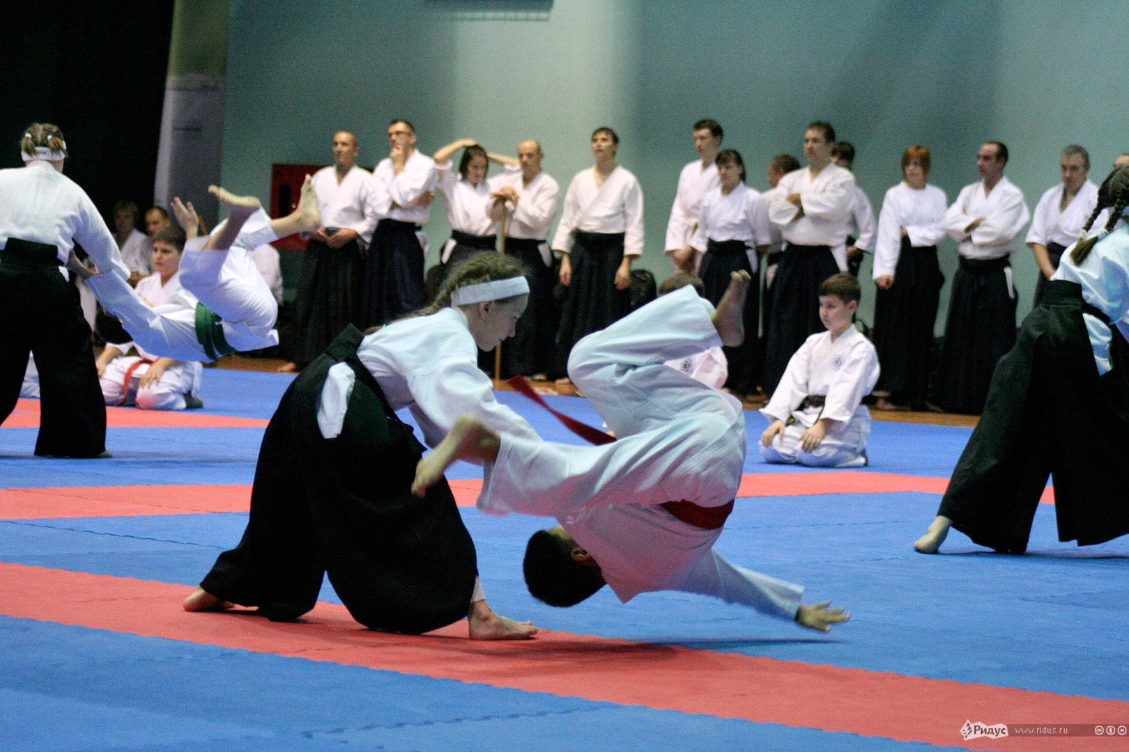 Запомнилась и девчушка из детской школы Айкидо, которая все время ходила, обнимая плюшевого мишку, и лишь изредка оставляла его на ковре во время тренировок. Когда пришло время показательных боев, она вышла с подружкой против пяти парней и на пару нахлобучила им так, что "мама не горюй". Причем двоих она разбросала по разным углам, не выпуская медвежонка из рук. Судейская коллегия смеялась до слез, а зал просто взорвался аплодисментами.