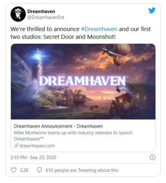 Бывший генеральный директор Blizzard Майк Морхейм основал издательский лейбл Dreamhaven с двумя уже созданными студиями Moonshot и Secret Door.