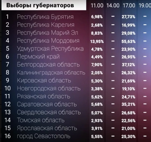 С его точки зрения, Мордовия, Белгородская и Саратовская область держат пальму первенства по явке благодаря динамичному развитию экономики в этих регионах: появились новые рабочие места, города начали благоустраиваться.