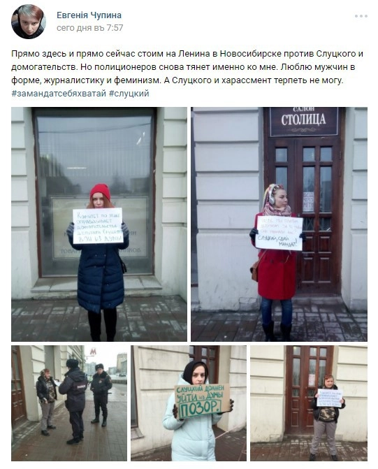 Девушки и парни вышли в центр города с плакатами, на которых было написано: «Зайчутка, может тебе сдать мандат?», «Руки прочь от журналисток», «Комитет по этике оправдывает домогательства депутата Слуцкого. Вон из Думы», «За мандат себя хватай», сообщает «Тайга.инфо».