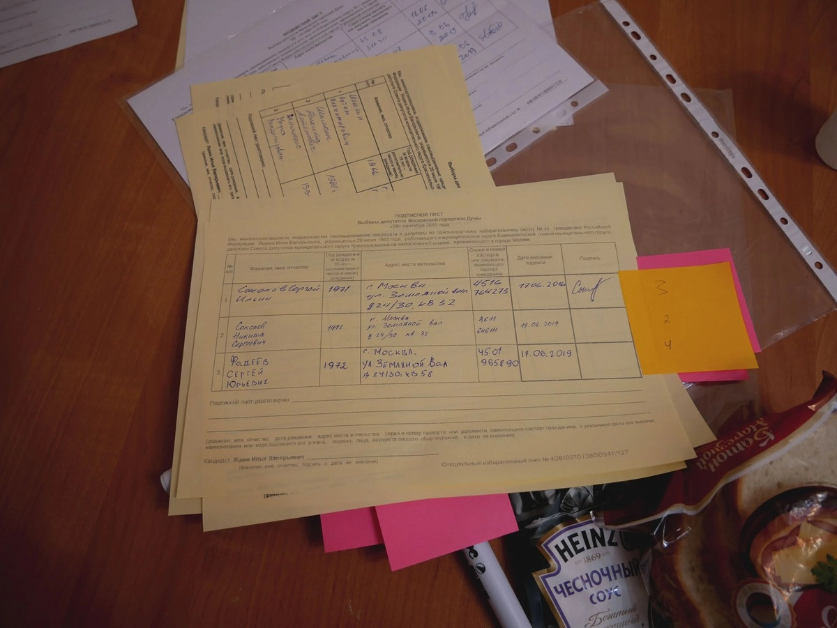 У кандидата Любови Соболь таких автографов — четыре, включая подпись ушедшего из жизни секретаря территориальной избирательной комиссии Арбат Лилии Симанковой.