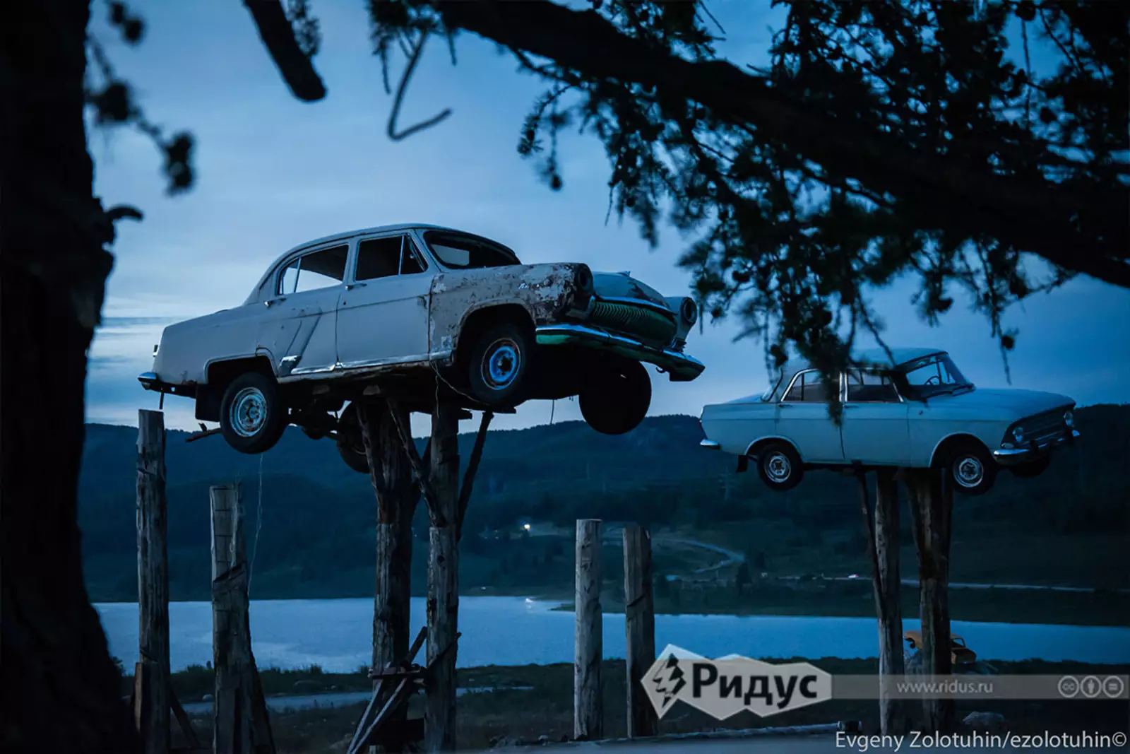 И отказать невозможно, ведь любому интересно узнать, откуда, зачем и почему на столбах среди гор висят «москвичи» и «волги». Здесь можно увидеть настоящие раритеты: единственную «Волгу» на весь Улаганский район, машину секретаря партии, председателя колхоза, немецкое авто от ветерана, которое он забрал у немцев по контрибуции, а впоследствии подарил Михалычу. И это далеко не всё.