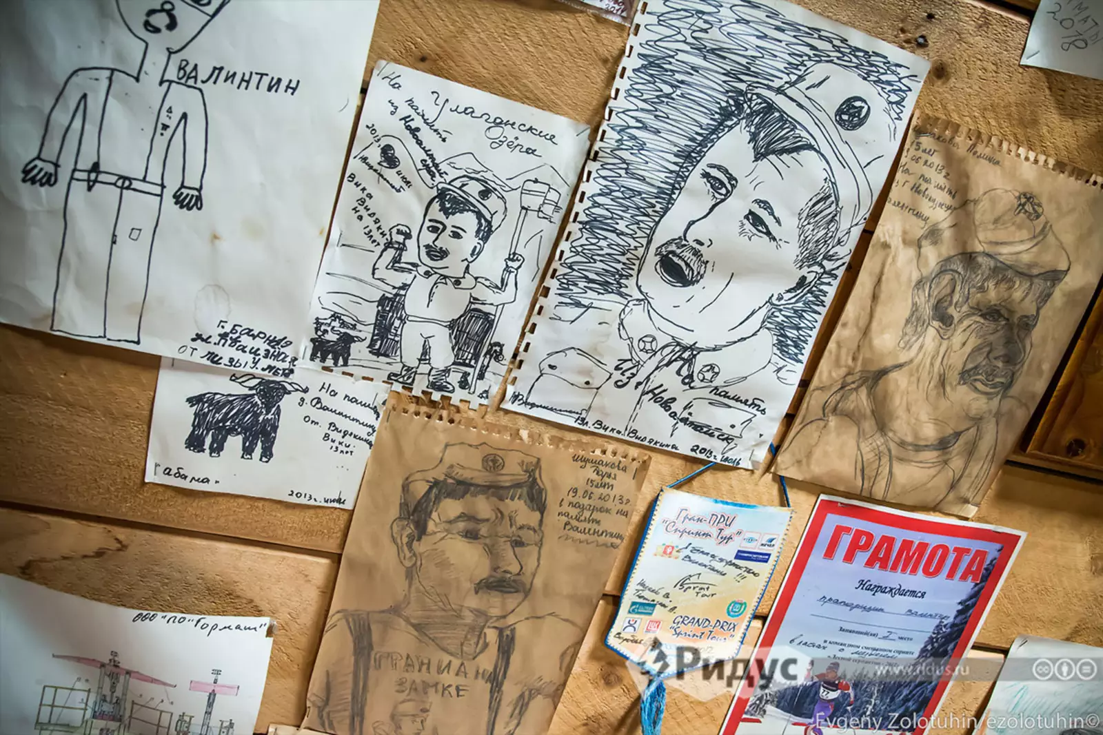 В подтверждение своих слов о юных туристах Михалыч демонстрирует «Детскую комнату милиции». Так он назвал один из гостевых домов, в котором десятки детских рисунков с изображением хозяина «Заставы». Валентин помнит историю каждого рисунка. Вот это нарисовал Пашка, когда ему было три года, а в этом году приезжал уже десятилетним пацаном, и все в таком духе.