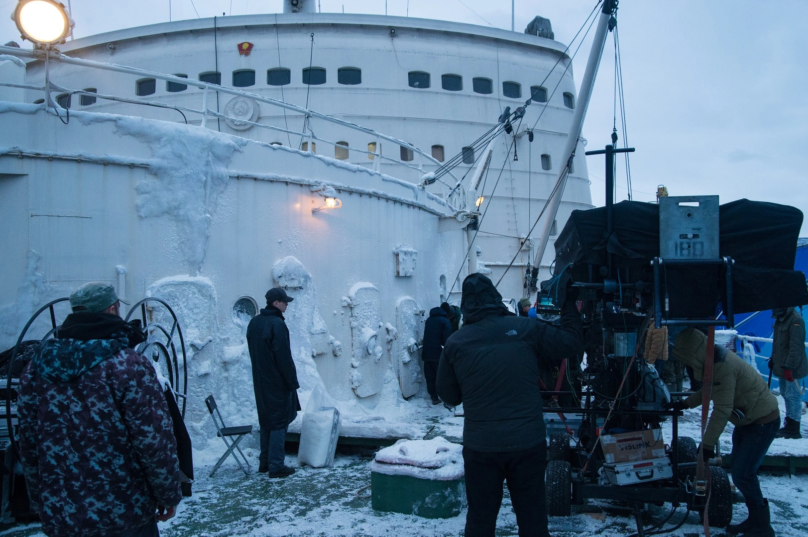Мне казалось, что важно понять, как в ощущениях сложить само отношение к судну: ведь с одной стороны — это мощь и величие огромного корабля, а с другой — абсолютно бытовой расклад, ежедневная работа большого коллектива и, что важно, совсем не военного характера. Если посмотреть документальные материалы, со стороны может показаться, что по палубе бегают практически хипстеры, такие бородатые парнишки в синих «алясках» с оранжевой подкладкой, в ушанках и валенках; всё это завораживает. Поэтому интересно не брутализировать тему героизма, а всё-таки рассказать про людей, со своими характерами и конфликтами. И про женщин, которые их ждали.В заглавной роли — собственно ледокола — выступил настоящий атомный ледокол «Ленин»: сегодня он уже на пенсии, в нём работает городской музей (который на время съёмок закрыли). Чтобы не уводить судно от берегов Мурманска, на носу и корме были установлен хромакейный фон протяжённостью в сто метров — мастера спецэффектов превратят его потом в бескрайнее ледяное поле. Оно дополнит эффект от использовавшегося на съёмках бутафорского снега двенадцати видов и спрея, «ледянившего» поручни.