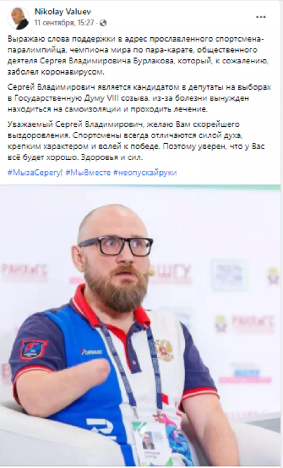 Депутат Госдумы Николай Валуев, актер Павел Деревянко, певец Денис Майданов и другие известные люди выразили в адрес Сергея Бурлакова слова поддержки. Политику пожелали не терять силы духа и воли к победе.