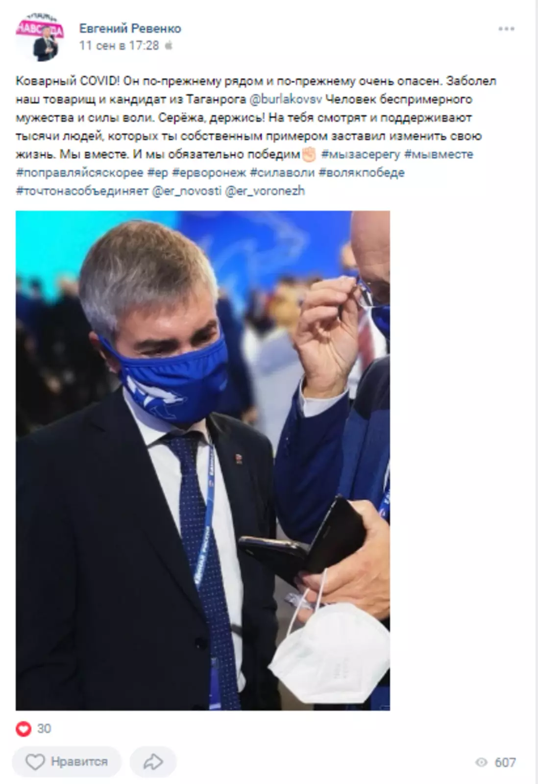 У кандидата в депутаты Госдумы по 151 избирательному округу (город Таганрог) Сергея Бурлакова был диагностирован коронавирус. Политик ушел на домашнюю изоляцию, как того требуют санитарные нормы.