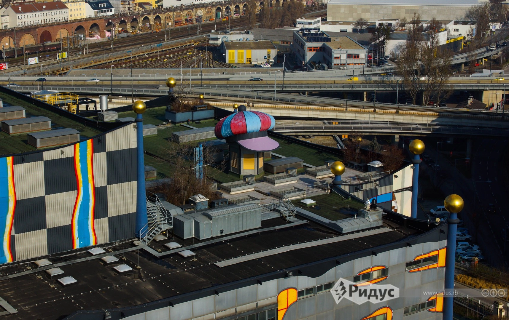 Кепка Хундертвассера на крыше завода