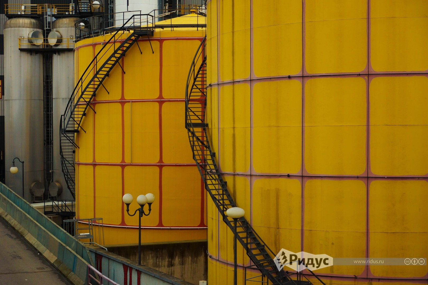 Внешнее оформление завода сочетает в себе промышленную брутальность и художественные изыски Хундертвассера