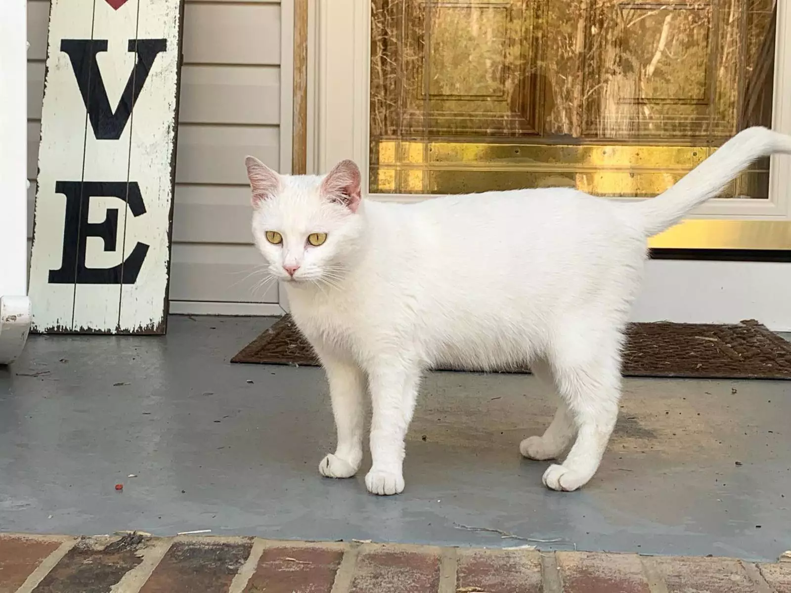 Однажды утром Сара Келли из Северной Каролины (США) вышла на крыльцо и увидела бездомную белую кошку, которая нуждалась в помощи. Она была беременна, и с ней уже были два взрослых котенка, но, несмотря на это, женщина впустила ее в дом и вскоре стала временной хозяйкой сразу восьми питомцев. Правда, пятерым из них еще предстояло родиться.