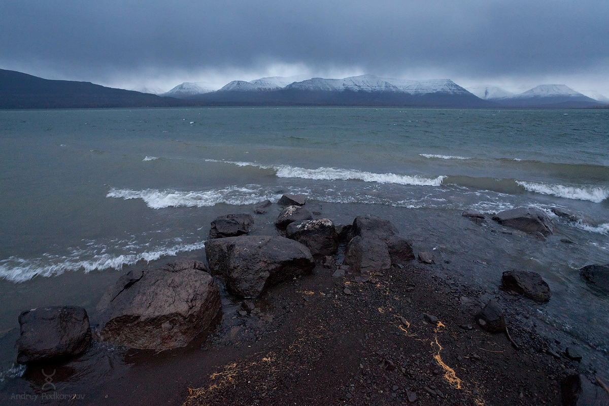Про сухой гидрокостюм немного думал, но не так сильно, чтобы прямо взять его с собой. Сменный комплект термобелья после мокрого сплава был гарантом благополучия. Шлось берегом озера Собачьего хорошо, потому что шлось бодро (всё сушилось на себе после бурной Накты). Продрожал обед и пошёл дальше берегом. Переодеваться в сухое хочется, но не на ветру.
