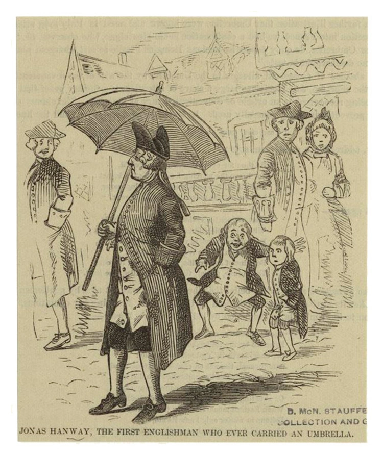 Укрываться с помощью такого «гриба» от нахальных ливней британских городов придумал англичанин Джонас Хенвей лишь в 1750 году.