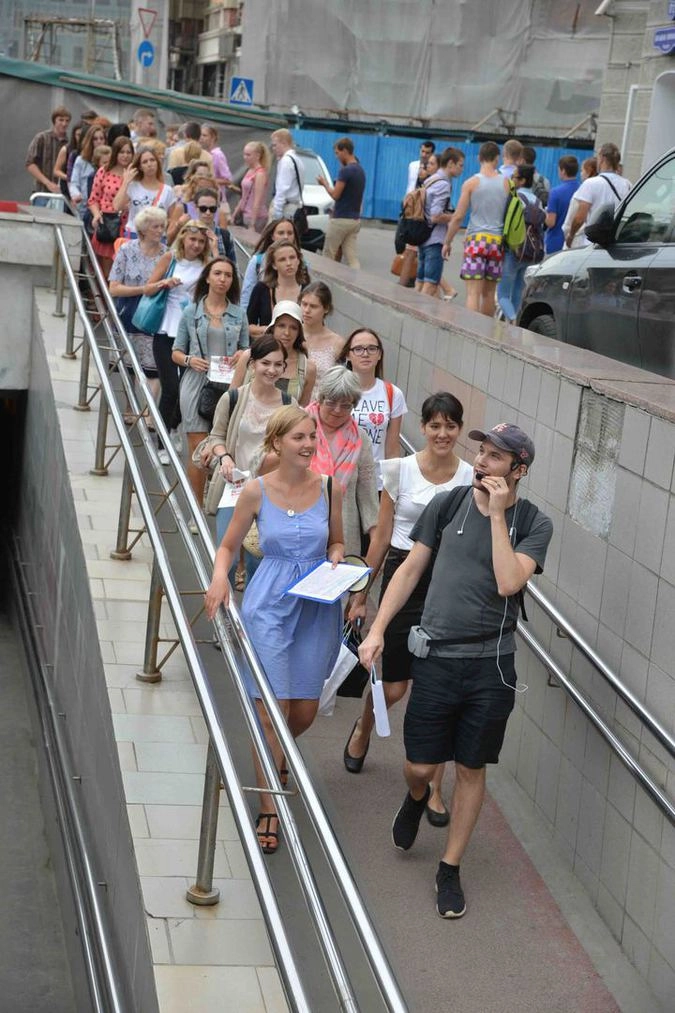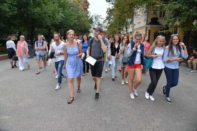 В 14.00 на Арбате начала экскурсию Тутта Ларсен. Она рассказала о версиях происхождения названия этой улицы, о доме-музее философа Лосева, фонтане «Принцесса Турандот», стене Цоя, затем экскурсия проследовала по Воздвиженке, Александровскому саду и закончилась на Площади Революции". По ходу экскурсии для прохожих играли музыканты: FolkBeatRF на Арбате, Филипп Барский рядом с метро «Арбатская», Ashe drums рядом с Ленинской библиотекой, Sky band в финале маршрута.